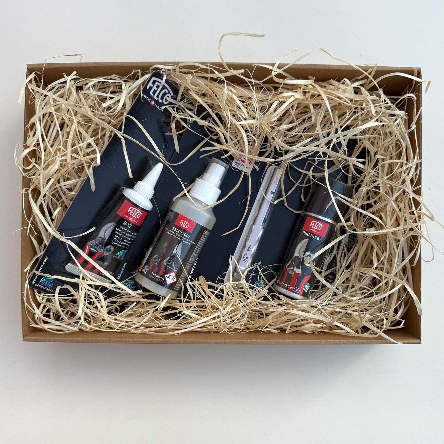 - Mazací tuk Felco 990 – voděodolné mazivo chránící nůžky a prodlužující jejich životnost.